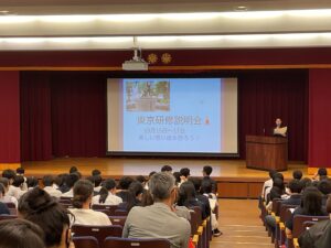 9月20日(土)1〜3限にウグイスホールにて、中学生とその保護者を対象に宿泊研修保護者説明会を実施しました。10月15日(水)から17日(金)にかけて実施する宿泊研修の目的やおおまかな行程について説明を行いました。