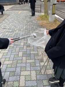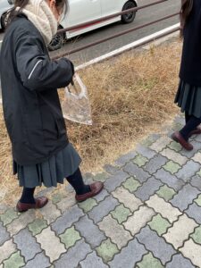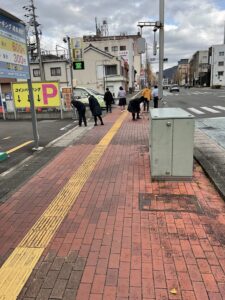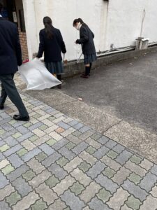 生徒会執行部・JRC・校内希望者の約15名が参加して伊奈波神社方面で約1時間ごみ拾いをしました。 曇りに加えて強風で、かなり寒さが厳しかったですが、それに負けることなく、路上に落ちているゴミを積極的に回収し、街の美化に尽力しました。