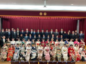 1月6日(火)昼ごろにウグイスホールにて、今年度に成人を迎える中高一貫の卒業生を対象として「二十歳のつどい」を実施しました。青春時代を共に鶯谷で過ごした仲間たちが久しぶりに母校に集まりました。