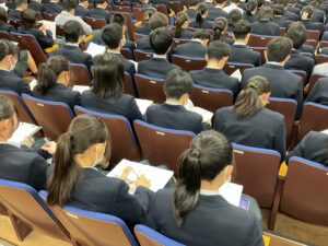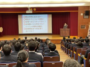 1月16日(金)3限にウグイスホールにて、高校3年生を対象に「大学入学共通テスト直前指導」を実施しました。