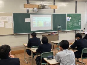 2月5日(木)7限に各HRとウグイスホールにて、高校1年生を対象に「GiNXオンライン授業」を行いました。
