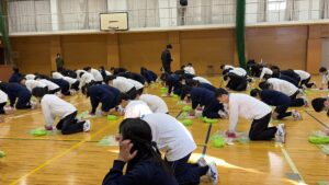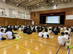 2月17日(火)6限、中学校2年生を対象に、第一体育館にて「AED講習会」(救命講習)を行いました。