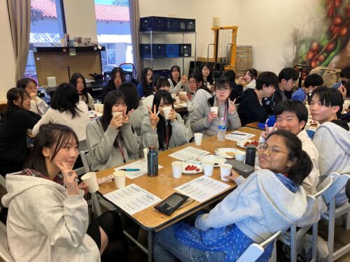 午前の企業訪問時と同様に、各グループで助け合い、励ましあい、みんなが意見をいいやすいようなチーム作りを主体的に取り組んでいる姿が多くみられました。