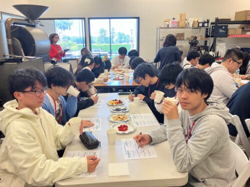 お話の後は、2種類のコーヒーの香りや色、ティスティングをしてみてシートに書き込むワークショップを体験させていただきました。