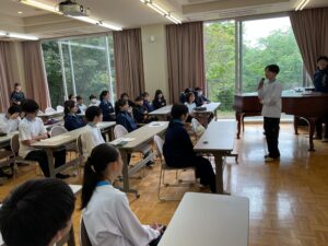 4月18日(土)放課後に中学1年生と高校1年生の議長副議長を対象に、学生会館でリーダー研修を行いました。金華山の山道を登り、リーダーとしての心構えや施設の使い方、注意事項について学びました。