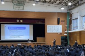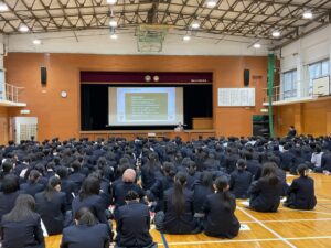 4月23日(木)7限、高校1年生を対象に第一体育館にて「制服・身だしなみ講話」が行われました。