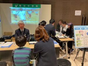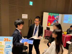 今回は教員に加えて、本校の生徒が主体的にブースで対応しました。実際に学校に通っている生徒の生の声を聞いてもらうことで、本校の魅力をより伝えることができました。