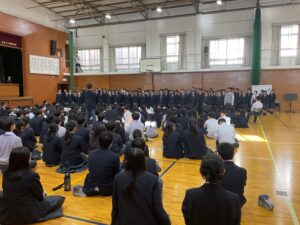 4月27日(月)7限に第一体育館にて、中学校全学年を対象に新入生歓迎会を実施しました。